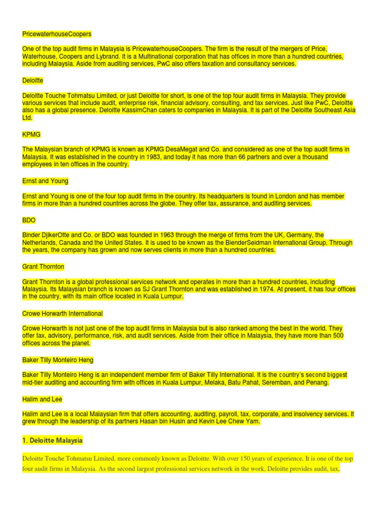Accounting & audit firms in malaysia provide a wide range of accounting, tax, consulting, auditing, financial advisory and corporate services to their clients. Why should i hire your firm to prepare our company accounts? Where i am one of their customers. Search for accounting / audit in malaysia? Hence, let us, one of the fastest growing accounting firm in johor bahru, manage your accounts and draw you a clear picture of the financial. The accounting firms are not sorted in any particular order. We offer various accounting services such as cloud accounting, bookkeeping, consolidation accounts. With over hundreds of accounting firms in malaysia, we have decided to feature only the top firms that has been proven to deliver quality accounting work and service. As accounting firms are usually found inside nondescript office buildings, i will simply list them here, and match them to map on the page. For companies interested in getting the best accounting services, it is useful to know the top accounting firms in malaysia and start from there. 5 5 1 based on 2 reviews. Jsc specialise in the incorporation of companies, accounting and bookkeeping, consolidation accounting, personal tax filling and payroll services to small and medium. Pwc or pricewaterhousecoopers as it was previously known is the world's largest audit and accountancy firm and one of the big four auditors.